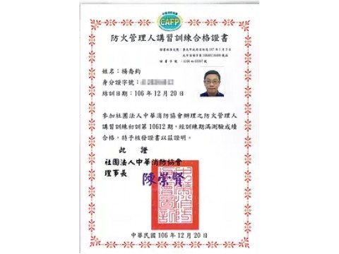 防火管理人合格證書